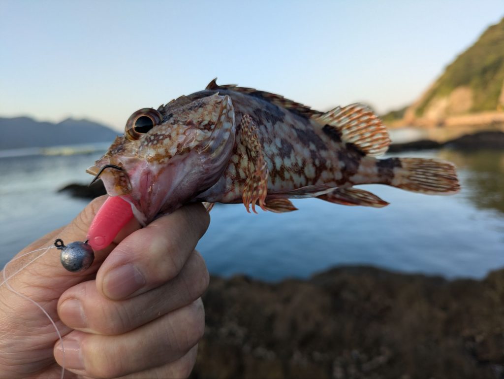 日の出後の1時間くらいはアタリもなかったが、海坊主が17cmのガラカブをチョロンとヒット。