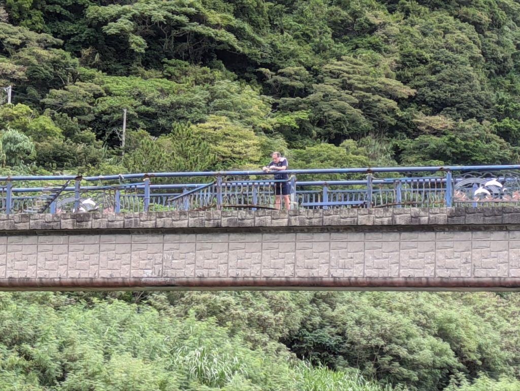 AK柴は橋の上から魚影を探しながら、ルアーを投げていたが… 。