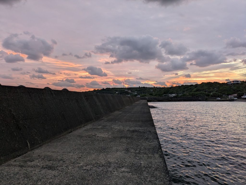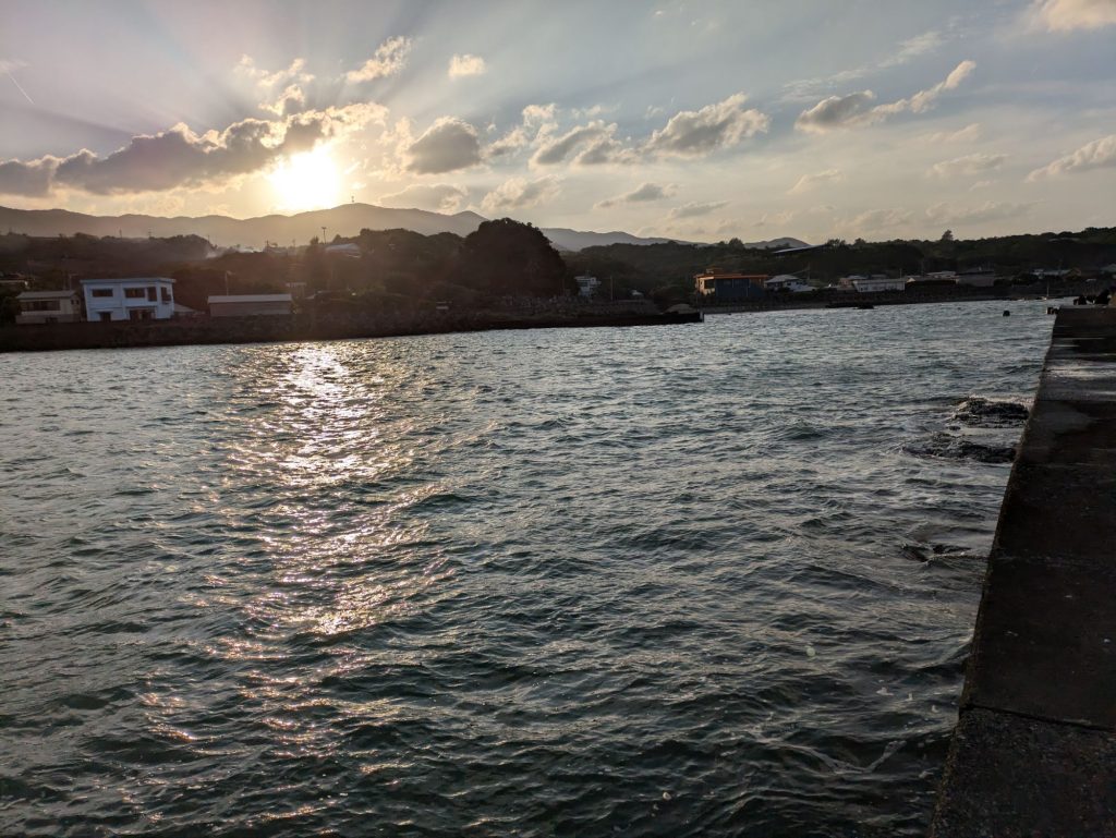 日没までの小一時間、海坊主はお得意ポイント港出入り口に陣取ってヒラアジを待ち伏せだ。