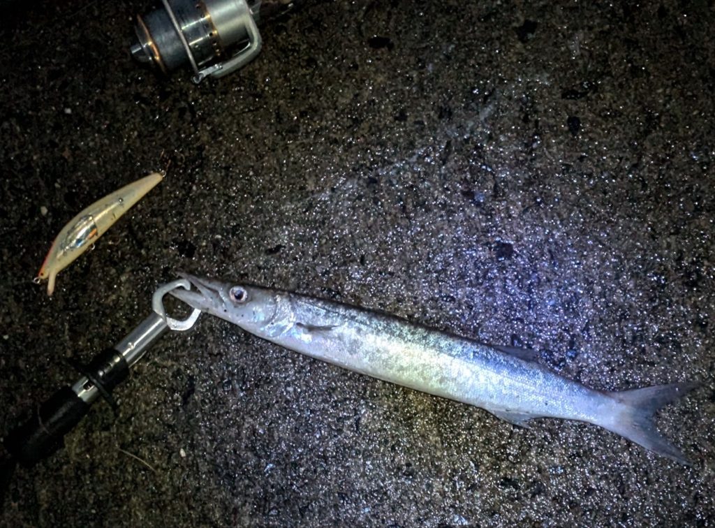 夜明け前の南川漁港スロープのすぐ外でググンッとバラクーダ 39cm ゲット!