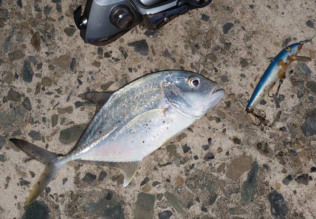 海坊主今回最後の獲物、ヒラアジ… とは言えないよな?メッキアジ22cm… 。