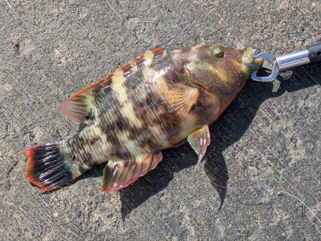 で、新顔のミツバモチノウオだが、コイツはスズキ目ベラ科モチノウオ属ミツバモチノウオっていう素性だ。