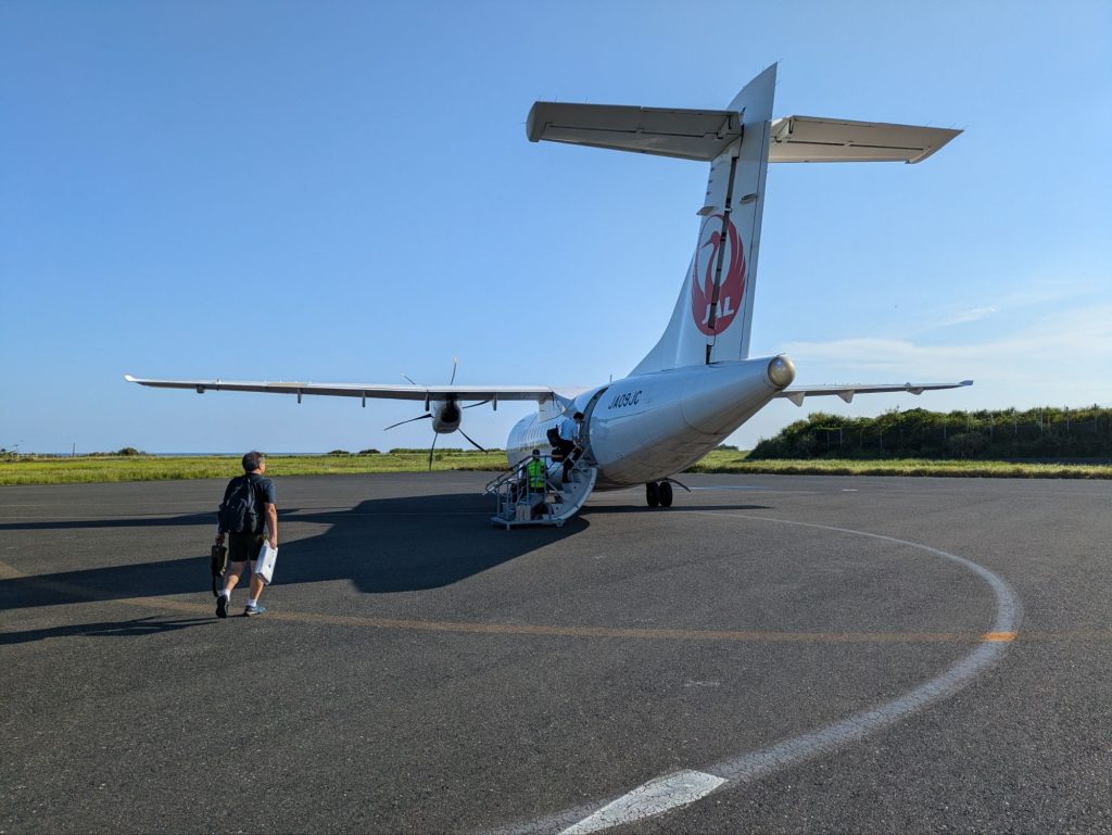 もうすぐ沖永良部島経由徳之島行きのプロペラ機が出る。