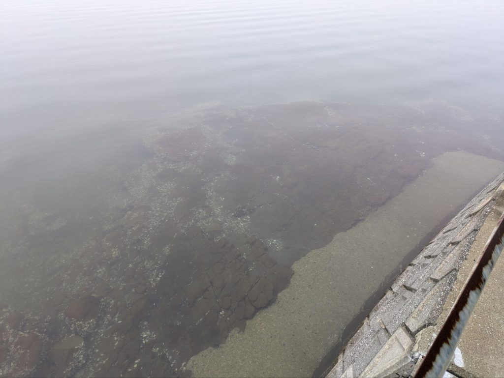 O田と共に昼過ぎの中潮のド干潮、岩場が目一杯露出しているであろう養殖場跡ガード下へ。
