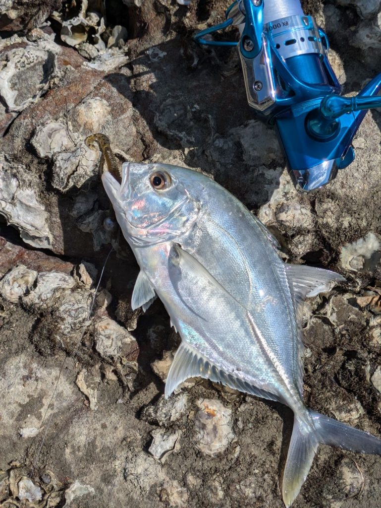 O田はメッキアジも初体験で20cmオーバーばかり3匹もゲット、さぞかしその引き味を堪能した事だろう。