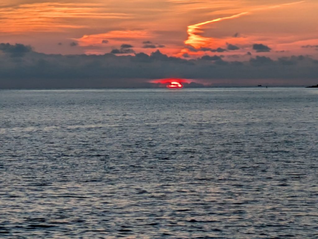 地元の温泉施設 ” 愛夢里 ” で天然温泉に浸かり、帰りに天草西海岸の東シナ海に沈む夕陽を眺めた。