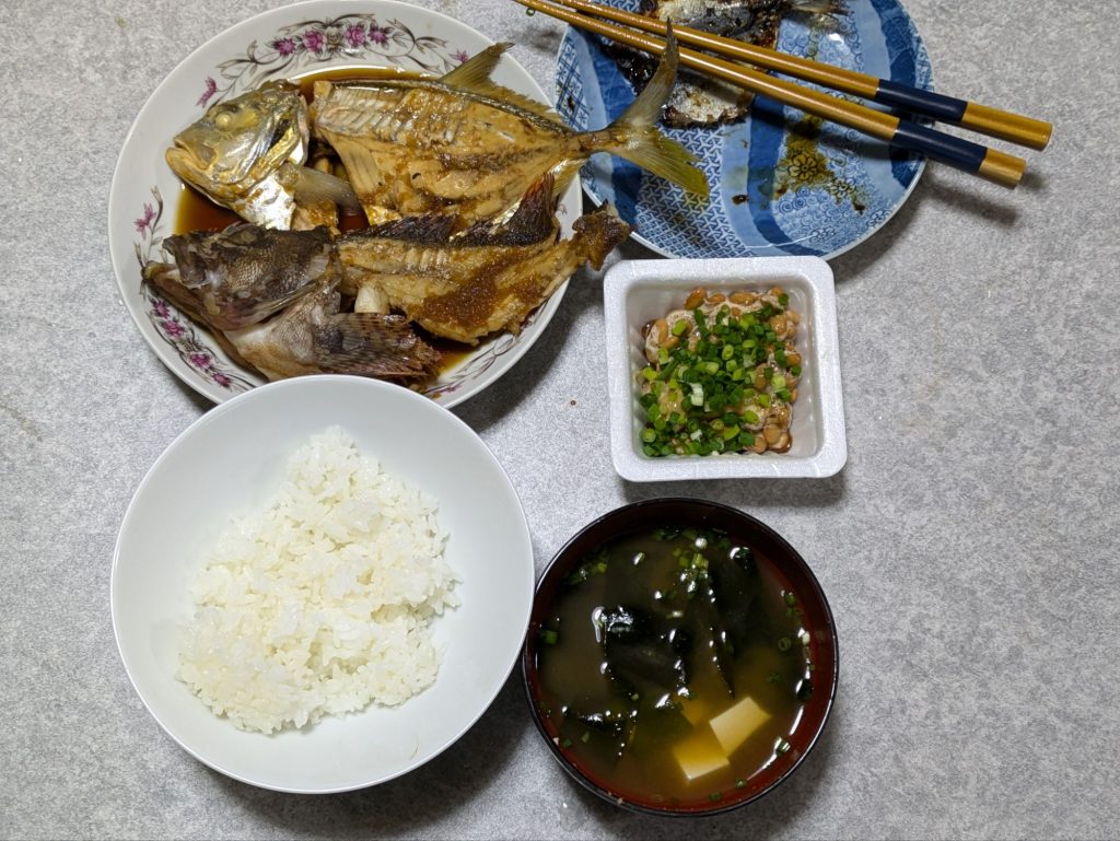 ガラカブとアジのアラをすぐさま煮付けにして白飯二杯目、締めは納豆で白飯三杯、嗚呼、充実の炭水化物祭りだ。